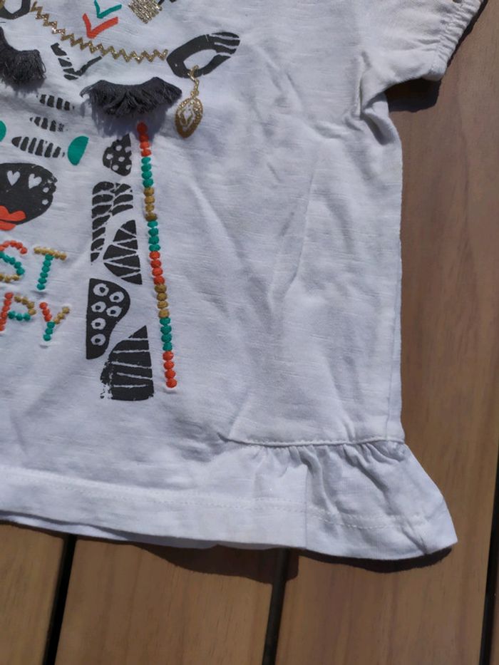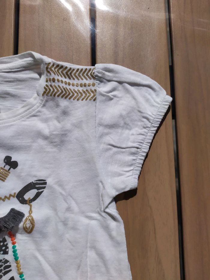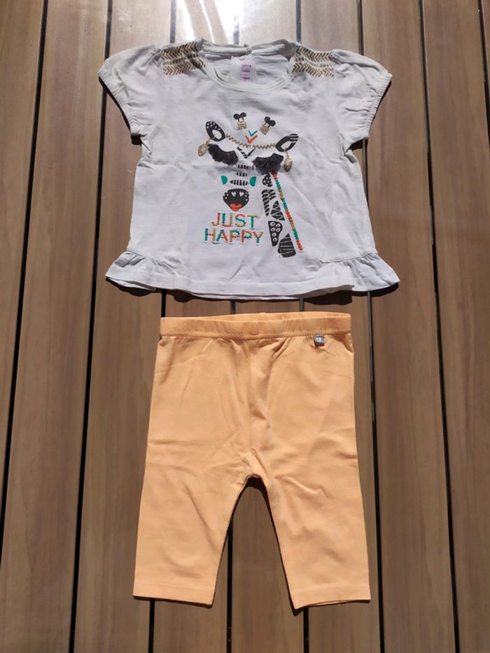 Joli petit ensemble 2 pièces. Gémo, taille 18 mois. ✔legging court orange, taille élastique. Composition : 59% coton 37% polyester 4% élastane. ✔tunique blanche motif girafe à manches courtes resserrées au bout. Ouverture dans le dos par 3 boutons pression. Motifs dorés sur les épaules. Composition : 100% coton. Ensemble en excellent état. #nerimafille18mois #gemo ✔