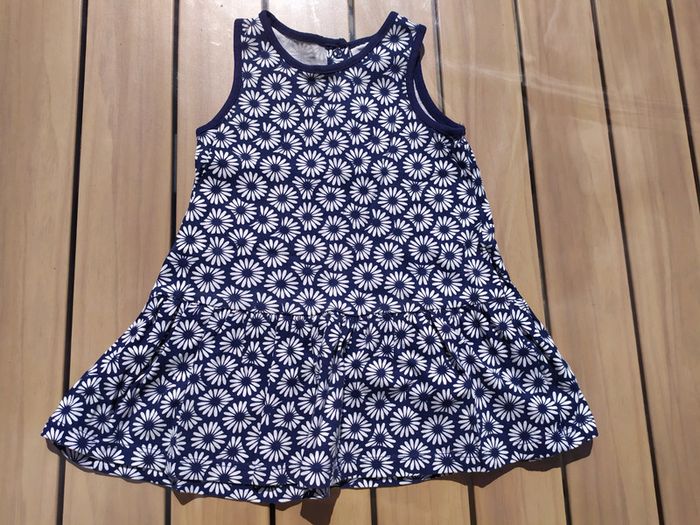 Magnifique robe à bretelles bleue marine motifs fleurs blanches. H&M, taille 18 mois. Ouverture dans le dos par 2 boutons pression. Composition : 100% coton. Robe neuve, portée une fois. #nerimafille18mois #hm