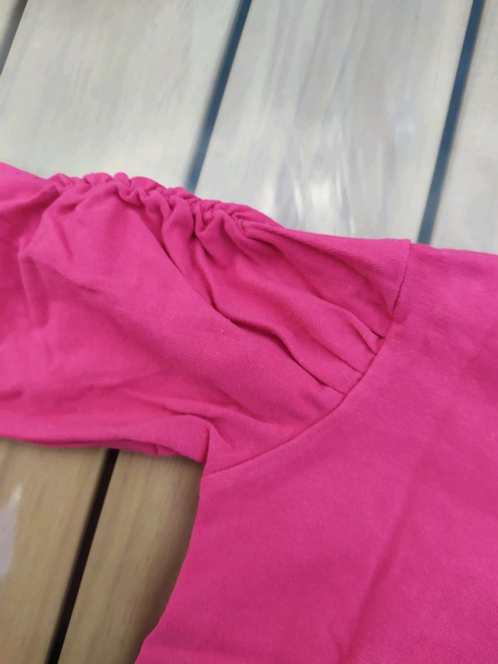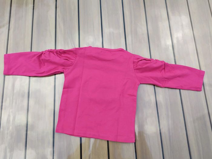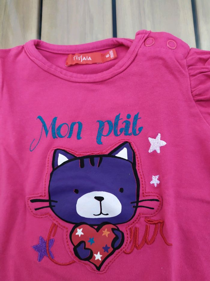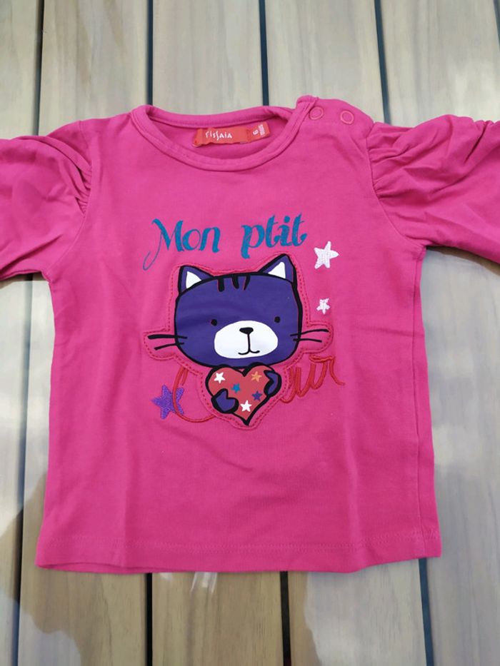 T.shirt à manches longues léger. Tissaïa, taille 6 mois. Rose motif fille qui tient son 🐱. Originalités sur le dessus des manches, ouverture sur l'épaule gauche par boutons pression. Composition : 96% coton 4% élastane. T.shirt neuf, jamais porté. #nerimafille6mois