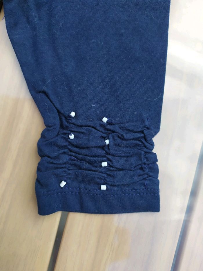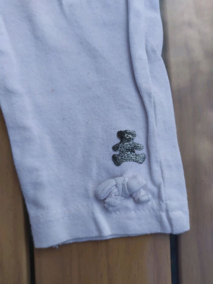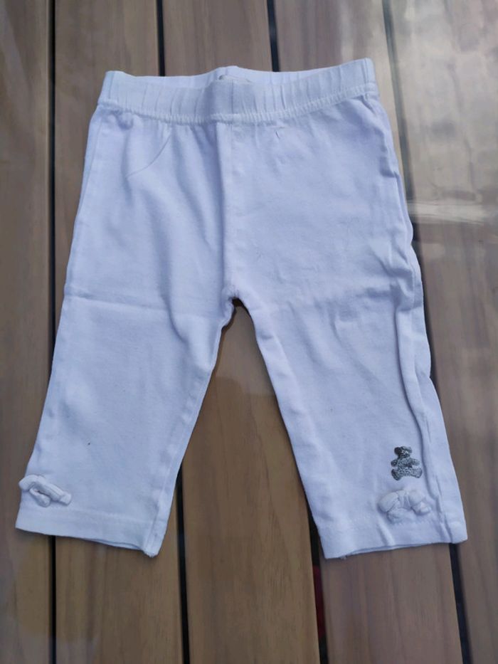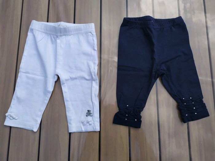 Lot de 2 leggings, un bleu marine et un blanc. Taille 6 mois. ✔Blanc Lulu castagnettes motif petit ourson en bas de la jambe gauche. Un noeud au bas de chaque jambe. Composition : 96% coton 4% élastane. ✔Bleu marine bas des jambes resserré + perles brodées. Composition : 97% coton 3% élastane. Les deux leggings sont en très bon état. #nerimafille6mois #lulucastagnette