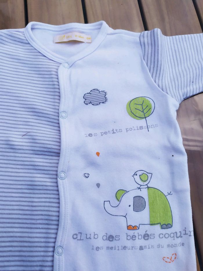 Joli pyjama blanc léger. Gémo, taille 6 mois. Ouverture par le devant et les deux jambes, petites oreilles au bout des pieds. Composition : 100% coton Pyjama en excellent état. #nerimafille6mois #nerimagarcon6mois #gemo