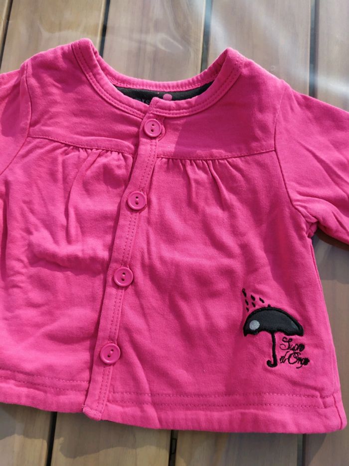 Gilet chaud fushia, doublure anthracite à pois. Motif parapluie☔ en bas à gauche. S'ouvre devant par des boutons. Sergent Major, taille 3 mois. Gilet en excellent état, comme neuf. Vous trouverez plein d'autres articles dès la naissance sur #nerimabébé #nerimafille3mois #sergentmajor