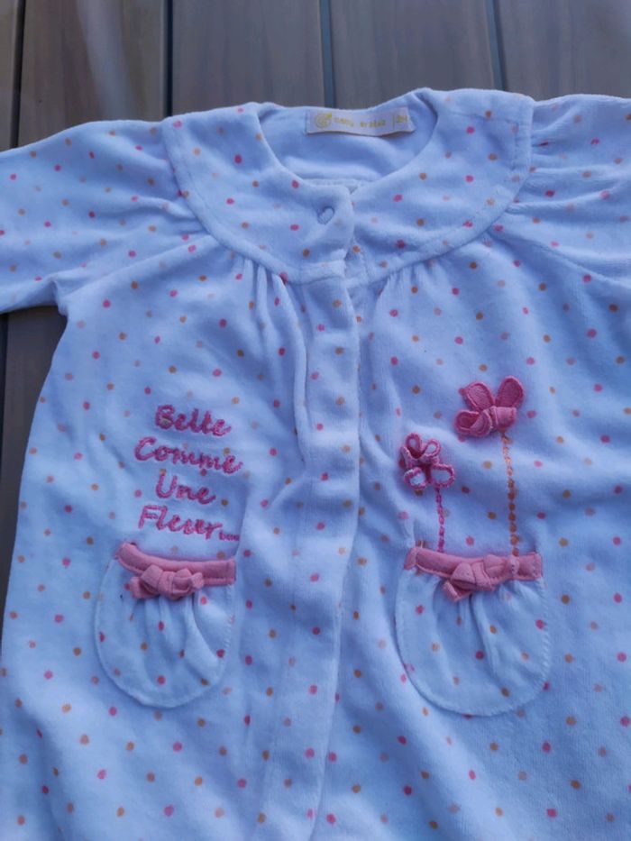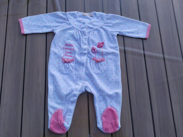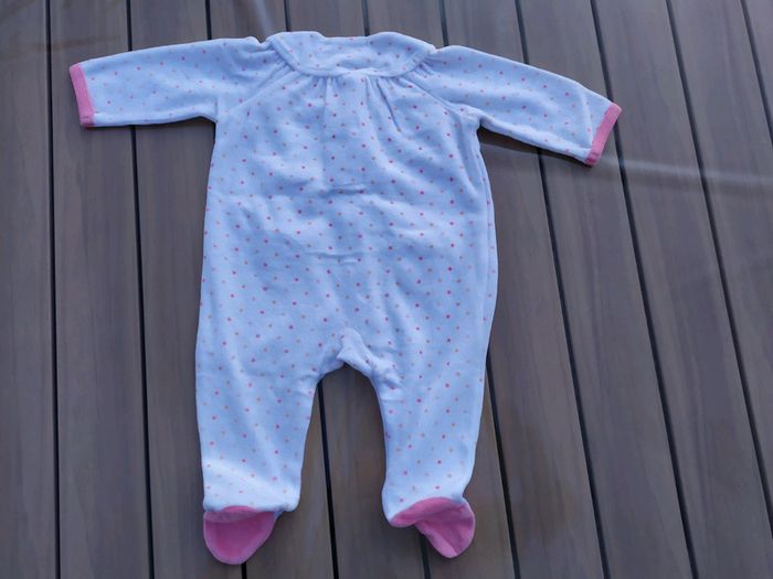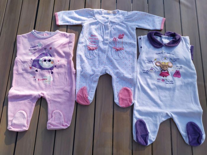 Lot de 3 pyjamas en velours taille 3 mois. ✔le blanc à pois roses s'ouvre devant, il a 2 petites poches. Gémo. Composition :76% coton 24% polyester ✔le rose avec un motif fusée s'ouvre dans le dos, il manque un bouton pour fixer l'arrière ( au milieu cf photo). Composition :76% coton 24% polyester ✔le blanc et violet avec un motif souris🐀 s'ouvre dans le dos. Kitchoun. Composition :75% coton 25% polyester. Les trois pyjamas sont en très bon état. 7€50 le lot 3€ l'unité. ⛔ Pas de réduction supplémentaire sur les lots Vous trouverez plein d'autres articles dès la naissance sur #nerimabébé #nerimafille3mois #gemo