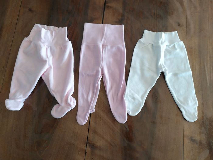 Lot de 3 leggings pieds fermés. Composition : 100% coton Tous les trois sont en très bon état. ✔un rose épais, taille 1 mois H&M ✔un blanc léger, taille 0/3 mois Fruits de la passion ✔un rose léger, taille 0/1 mois ( sans marque) Vendus 5€ le lot où 2€ l'unité Vous trouverez plein d'autres articles dès la naissance sur #nerimabébé #nerimanaissance #nerimafille1mois