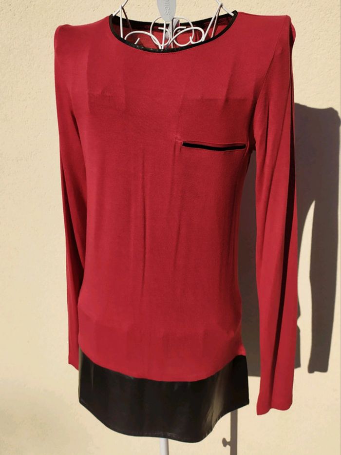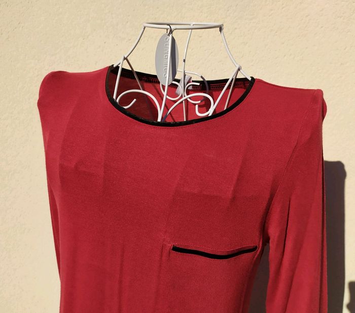 T. Shirt rouge 🔴avec une bande en similicuir noir sur le bas, ainsi qu'un liseré similicuir noir à l'encolure et sur la fausse poche poitrine. Composition voir la dernière photo📷 Taille 34/36, Blancheporte. Vous trouverez plein d'autres vêtements femme sur #nerimavêtementsfemme #nerimavetementsfemme36 #nerimafemme36 #nerimafemmehauts