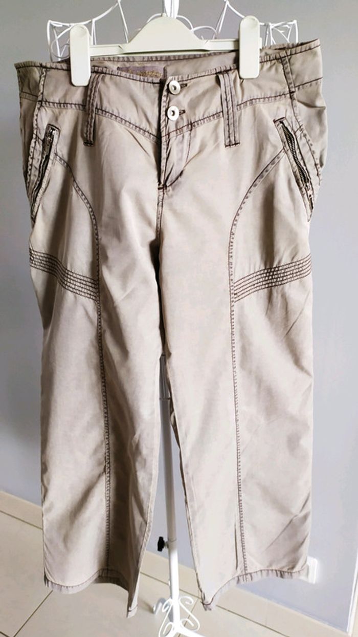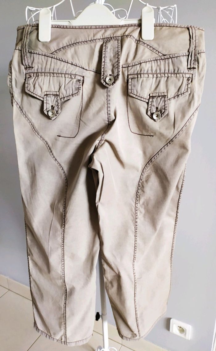 Pantalon beige foncé léger, coupe droite. KY création, taille 42 Fermeture éclaire + 2 boutons. 2 poches avant + 2 poches arrière. Passants pour ceinture extra larges. Composition : 55% nylon 45% coton Longueurs : intérieur jambe 64 cm totale 90 Très bon état Et plein d'autres vêtements femme sur #nerimavetementsfemme42 # nerimavetementsfemme #nerimafemme42 #ykcreation