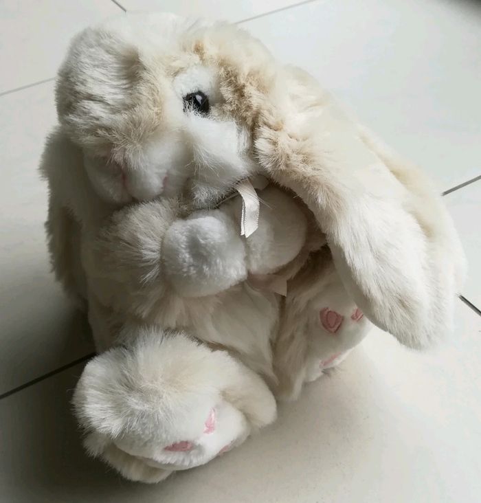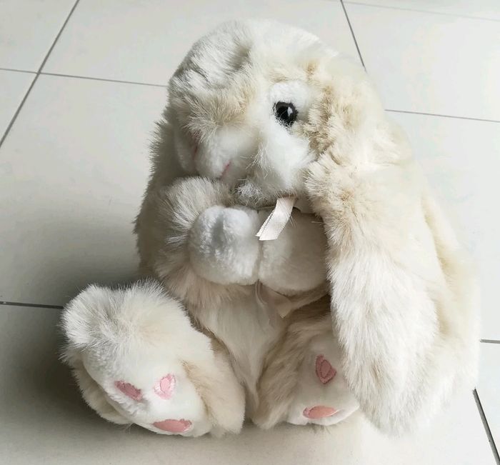 Peluche en forme de lapin de couleur crème et blanc. Hauteur 22 cm environ. Très bon état Et plein d'autres jouets sur #nerimajouets #nerimapeluches