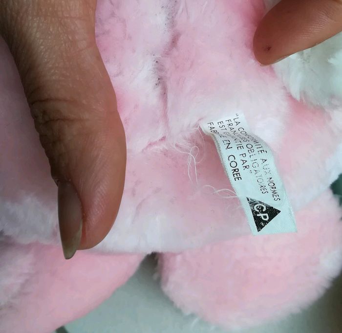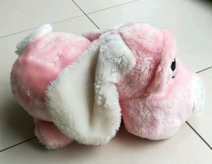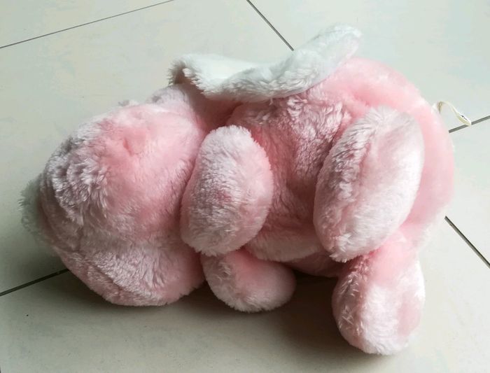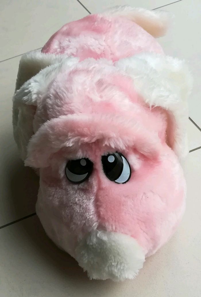 Peluche en forme de gros chien rose et blanc. Hauteur 18 cm environ, longueur 36 cm environ. Très bon état Et plein d'autres jouets sur #nerimajouets #nerimapeluches