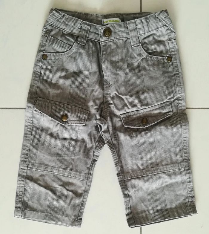 Bermuda marron/gris, taille ajustable, 2 ans. Fermeture zippée + un bouton pression. Et plein d'autres vêtements garçon en 2 ans sur #nerimavêtementsenfantgarçon2ans #nerimagarcon2ans #vertbaudet