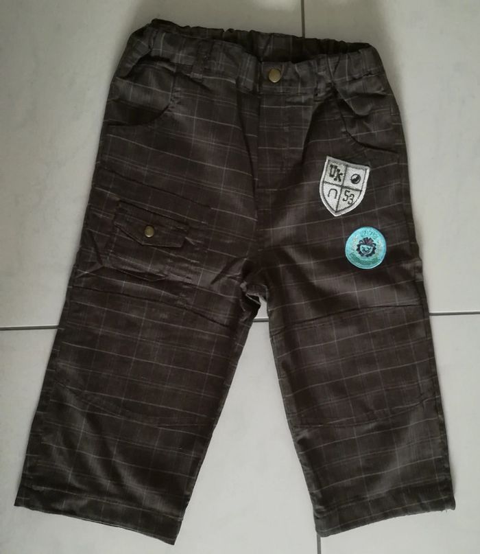 Pantalon épais marron à carreaux. Taille élastique ajustable + un bouton pression. Taille 18 mois. Et plein d'autres vêtements en 18 mois sur #nerimavêtementsenfantgarçon18mois #nerimagarcon18mois #tissaia
