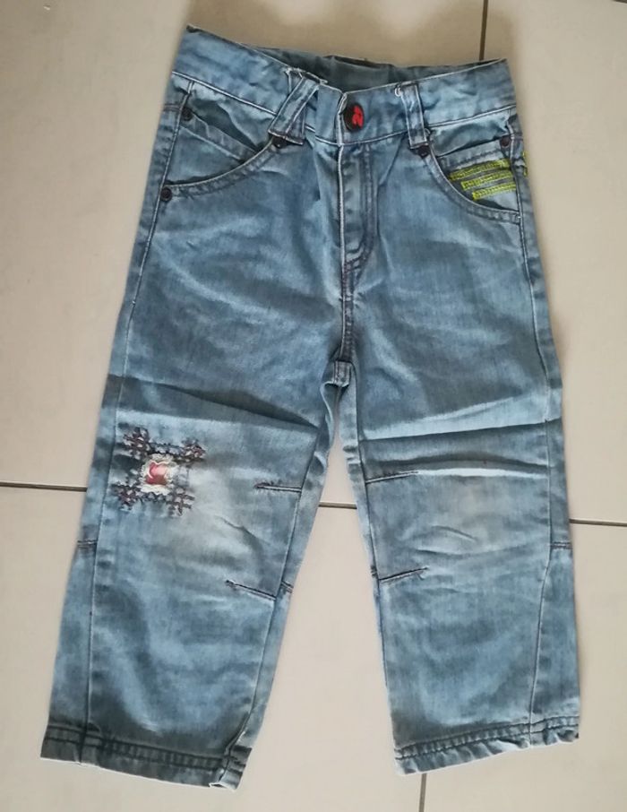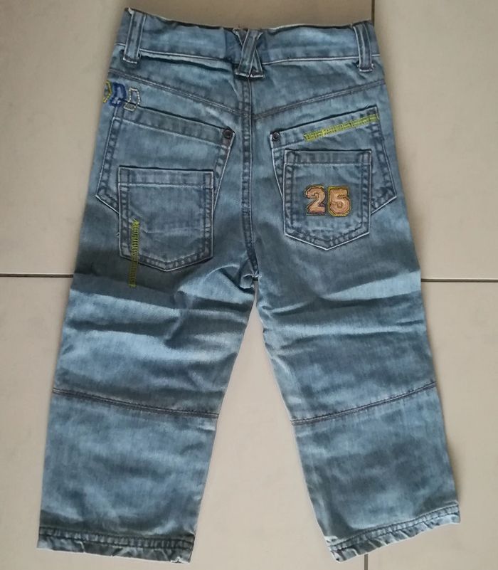 Jean bleu clair. Taille 24 mois, ajustable. Fermeture zippée + un bouton pression. Et plein d'autres vêtements en 2 ans sur #nerimavêtementsenfantgarçon2ans #nerimagarcon2ans #kidkanai