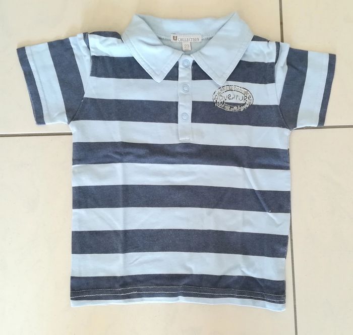 Polo manches courtes rayé bleu/bleu. Boutons pressions. Taille 23 mois Et plein d'autres vêtements en 23 mois sur #nerimavêtementsenfantgarçon2ans #nerimagarcon2ans