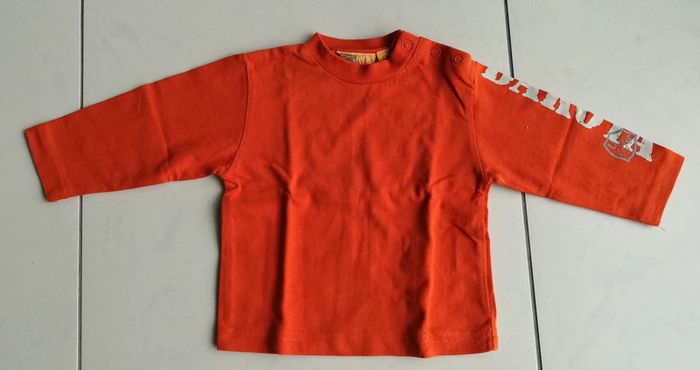 T.shirt manches longues orange. Taille 6 mois. Boutons pressions sur l'épaule. Et plein d'autres vêtements en 6 mois sur #nerimavêtementsenfantgarçon6mois #nerimagarcon6mois