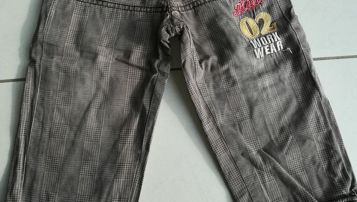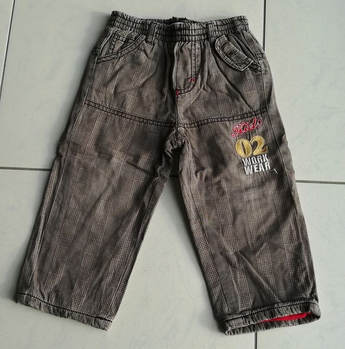 Pantalon marron à carreaux. Taille élastique. Les couleurs sont passées au niveau des genoux ( cf photo). Taille 18 mois Et plein d'autres vêtements en 18 mois sur #nerimavêtementsenfantgarçon18mois #nerimagarcon18mois