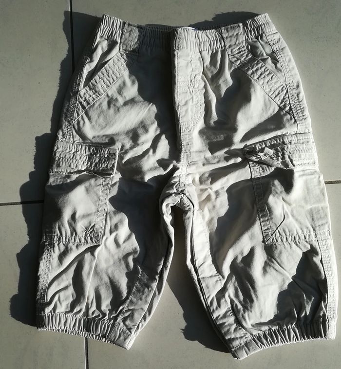Pantalon doublé beige, taille élastique, boutons pressions à l'entrejambe. Taille 6 mois. Et plein d'autres vêtements en 6 mois sur #nerimavêtementsenfantgarçon6mois #nerimagarcon6mois #kitchoum