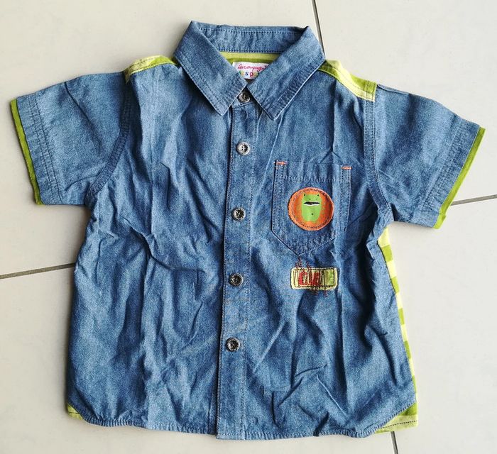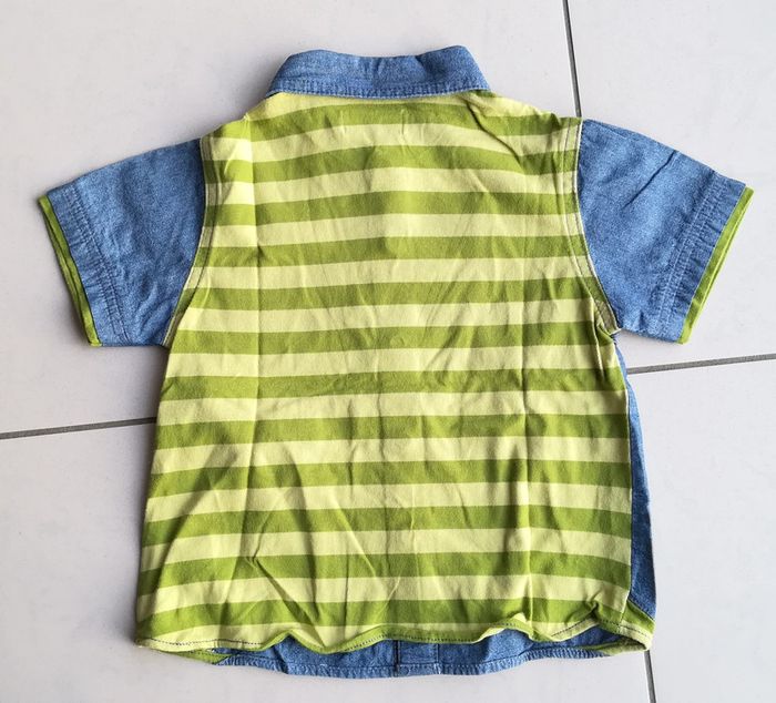 Magnifique chemisette en jean léger devant, t.shirt dans le dos. Fermeture par boutons pressions. Taille 18 mois. En excellent état, comme neuve. Et plein d'autres vêtements en 18 mois sur #nerimavêtementsenfantgarçon18mois #nerimagarcon18mois #lacompagniedespetits