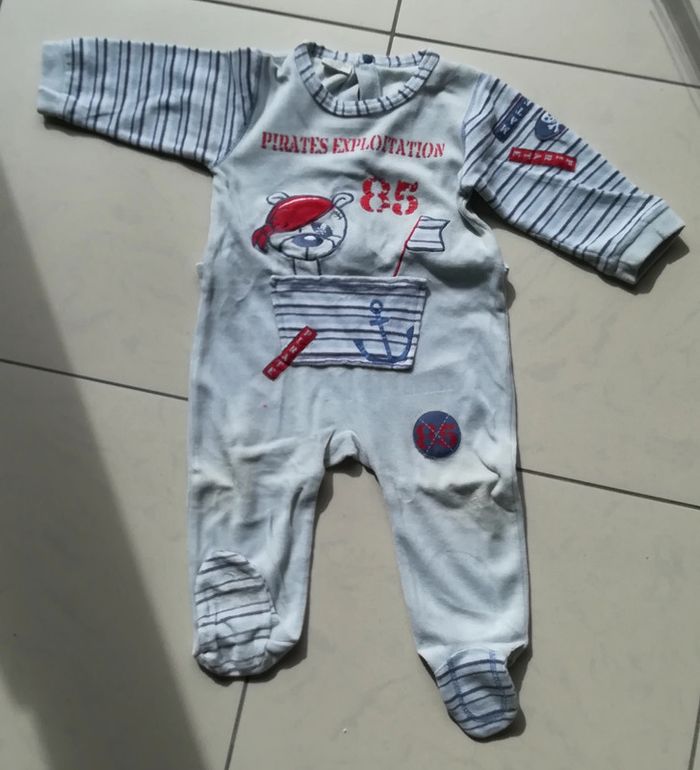 Pyjama une pièce, fermeture dans le dos, en velours. 12 mois. Et plein d'autres vêtements en 12 mois sur #nerimavêtementsenfantgarçon12mois #nerimagarcon12mois