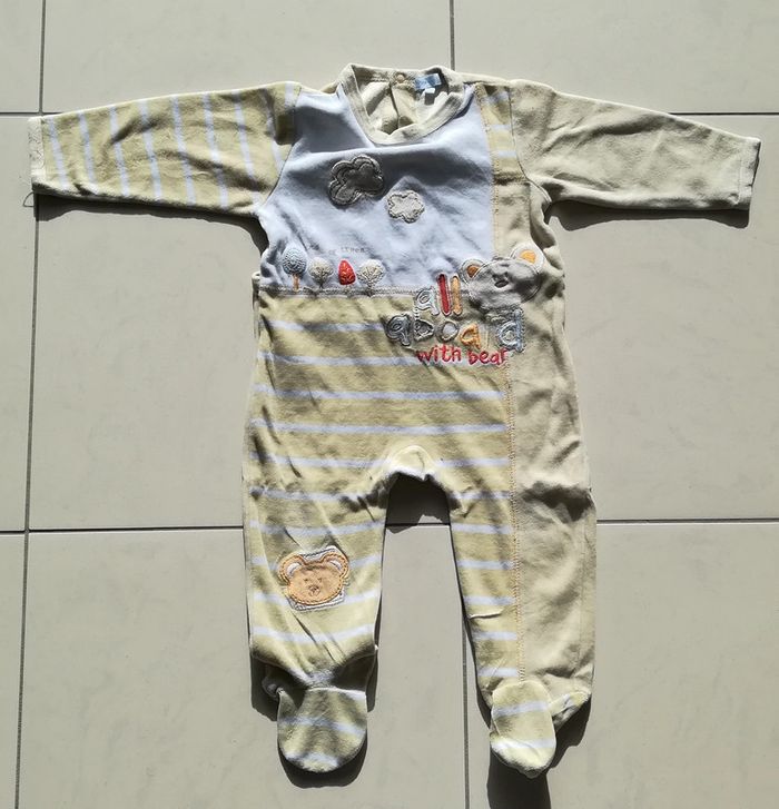 Pyjama une pièce, jaune clair ( couleur un peu passée). Taille 18 mois Et plein d'autres vêtements en 18 mois sur #nerimavêtementsenfantgarçon18mois #nerimagarcon18mois #texbaby