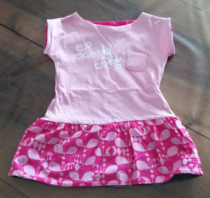 Robe réversible, taille 3 ans. Une petite tâche au niveau de la ceinture sur une face ( cf photo). Et plein d'autres vêtements en 3 ans sur # nerimavêtementsenfantfille3ans