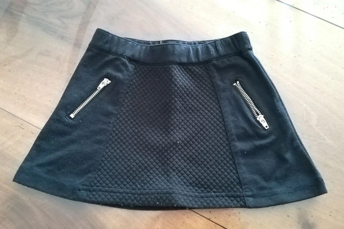 Jupe courte noire. Taille élastique, 18 mois. 2 fausses poches zippées devant. Et plein d'autres vêtements en 18 mois sur #nerimavêtementsenfantfille18mois