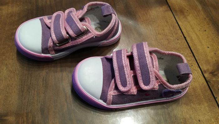 Baskets fille à double scratchs. Manque la semelle intérieure, mais excellent état autrement ( très peu portées). Et plein d'autres chaussures enfants sur #nerimachaussuresenfants #nerimapointure22