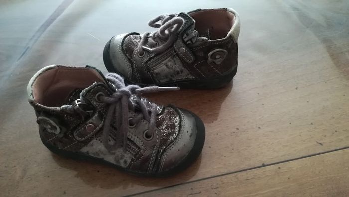 Ces chaussures ont connu les premiers pas chaussés de ma fille... je les ai choisi pour le très bon maintient de la cheville et leur robustesse. Tout cuir. Pointure 21. Quelques égratignures sur la pointe (cf photo). Et plein d'autres chaussures enfants sur #nerimachaussuresenfants #nerimapointure21