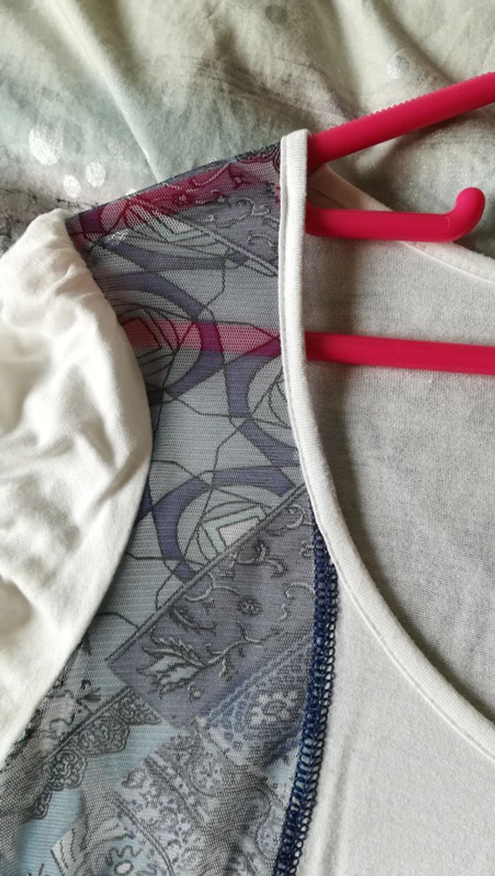 T.shirt blanc ample, côtés bleu transparents. Grand col large. Taille 38/40 Et plein d'autres vêtements femme sur #nerimavêtementsfemme #nerimavêtementsfemmetaille38 #nerimafemme38