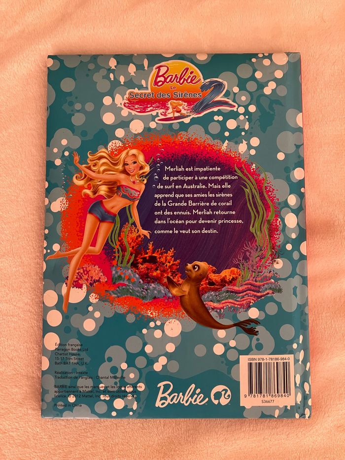 Livre illustré Barbie: le secret des sirènes 2 ~ Les couleurs sont + vives et + jolies en réel ~ Le livre possède qlqes imperfections rescotchées très proprement (voir photos) ~ Il reste en bon état général ~ Vendu 1€50 ~ Autres livres enfants disponibles ~ Envoi soigné.