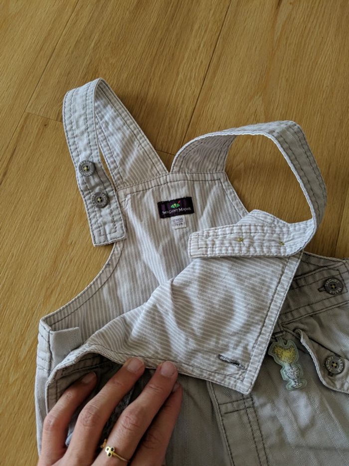 Salopette Sergent Major en 12 mois. Bretelles réglables et bas retroussable. En très bon état. N'hésitez pas à regarder mon dressing, réduction dès 2 articles achetés. Les articles sont triés par taille avec le#. #chipomaboy12mois