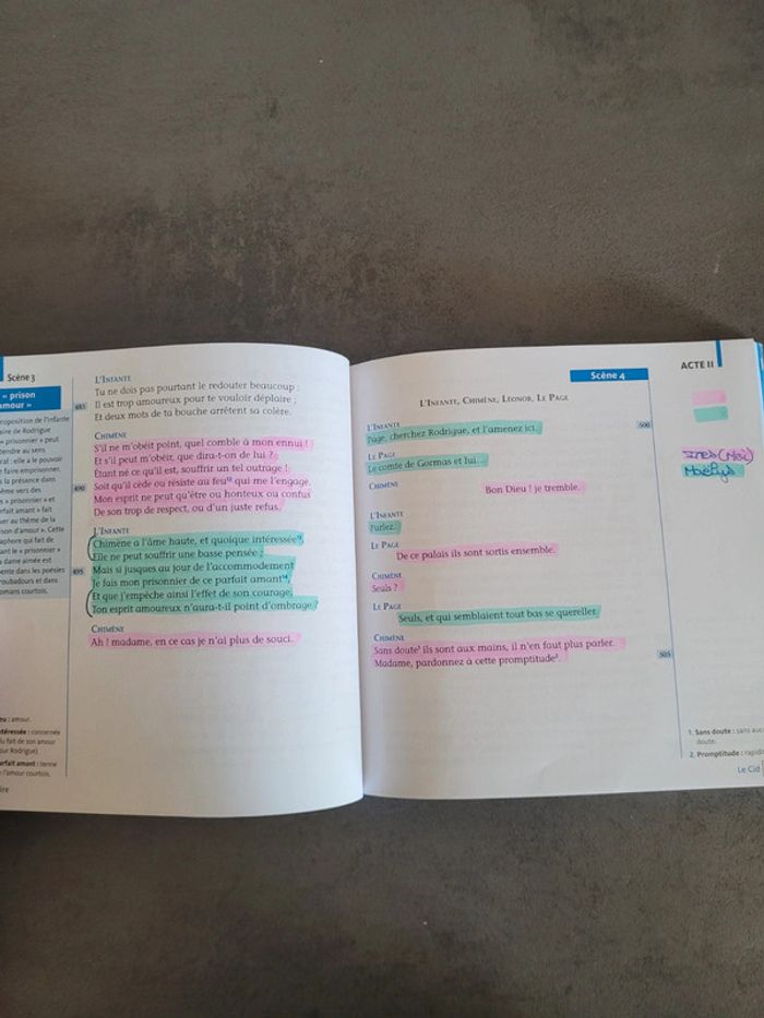 Livre Le Cid intégral collège. Il a servi 1 fois et une page est stabilotée ce qui ne gêne en rien l'utilisation
