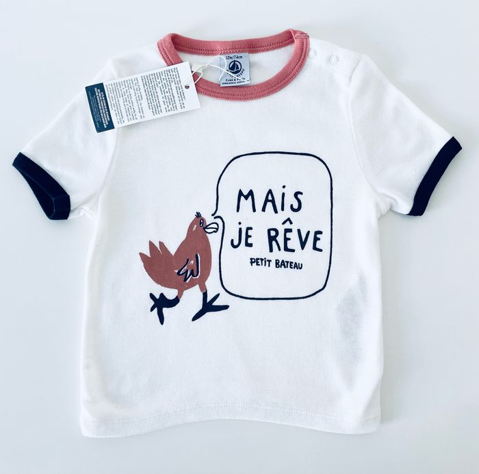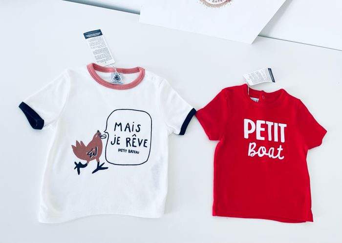 Magnifique lot de 2 tee-shirt Petit Bateau Taille 12 mois 100% coton Article neuf avec étiquette Prix d’achat 58€