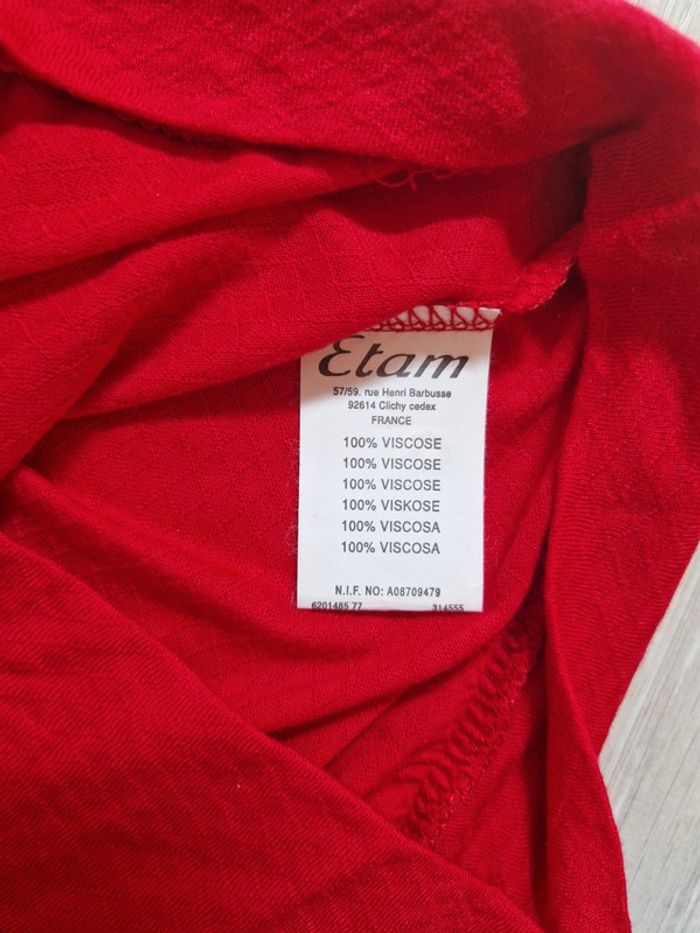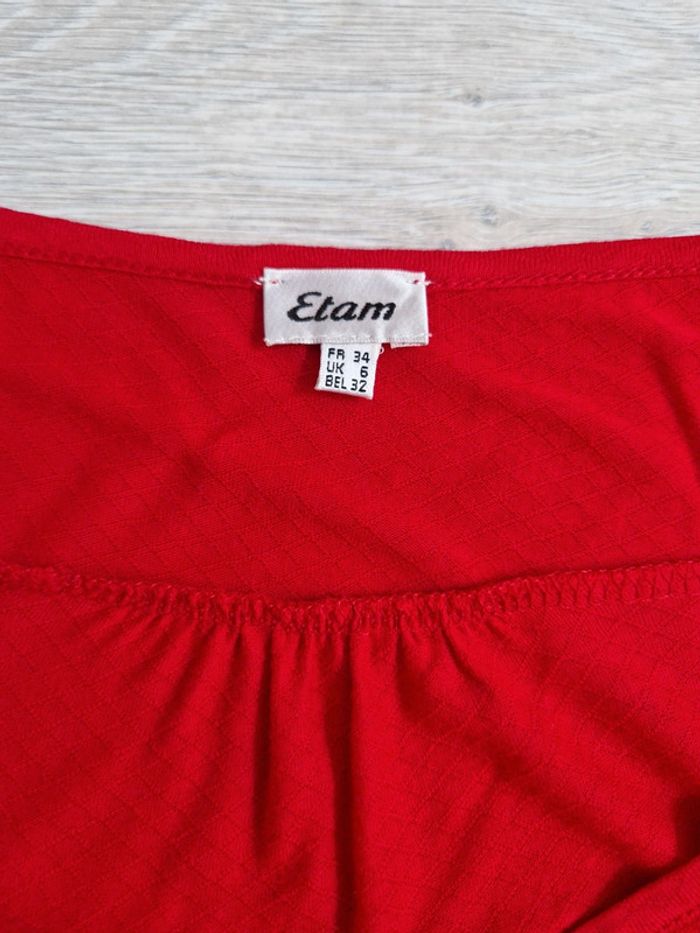 Tee-shirt rouge neuf Etam 34 décolleté en V - photo numéro 3