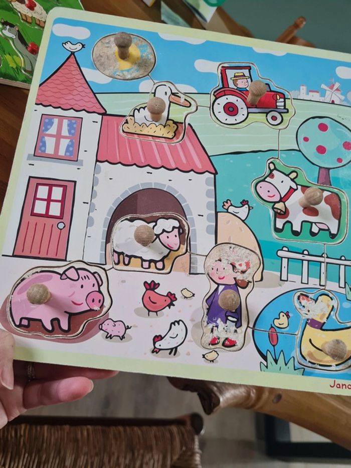 #elodie53_jouet Lot de 2 jeux d'encastrement, A servi pour plusieurs enfants Les personnages étaient tellement à croquer qu'ils l'ont été... Dessins abîmée mais aucun soucis pour les formes
