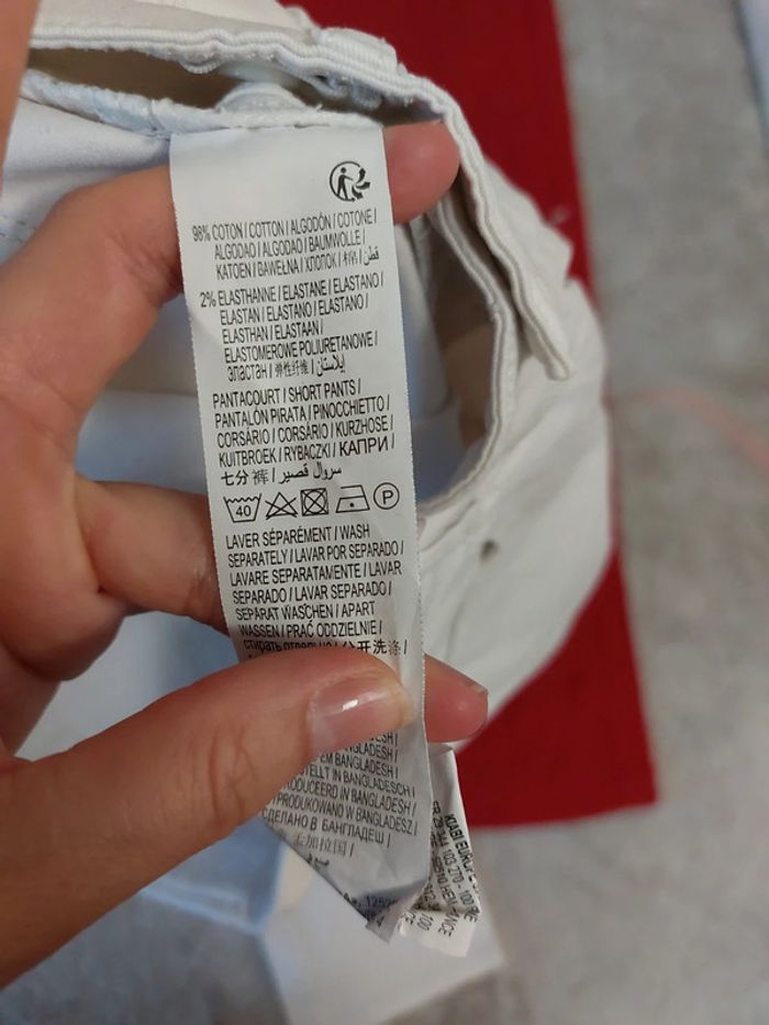 Jeans blanc en excellent état La taille peut se resserrer avec des élastiques Kiabi 10 ans Largeur 30 cms Hauteur 68 cms Hauteur jambes à partir de l entrejambe 48 cms