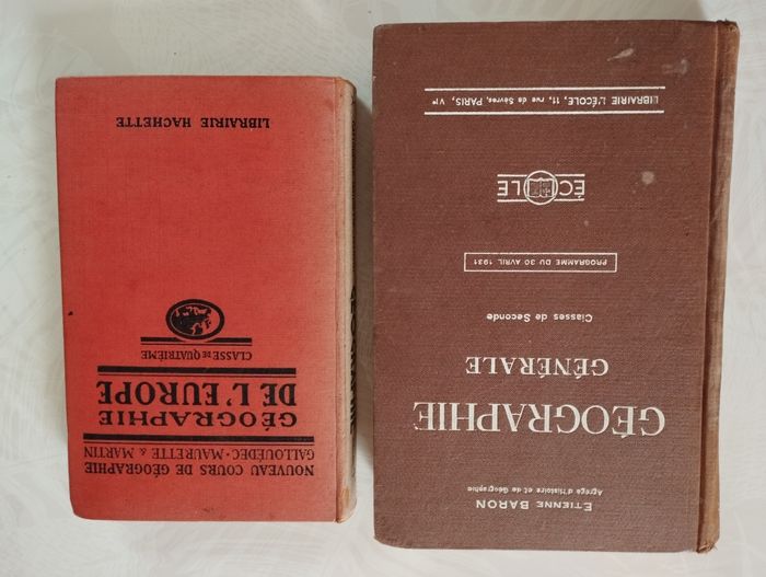 Géographie générale a des annotations, des phrases soulignées, sur certaines pages. 1937 Géographie de l'Europe 1938 Livres anciens, restent pr l'époque ds un état correct