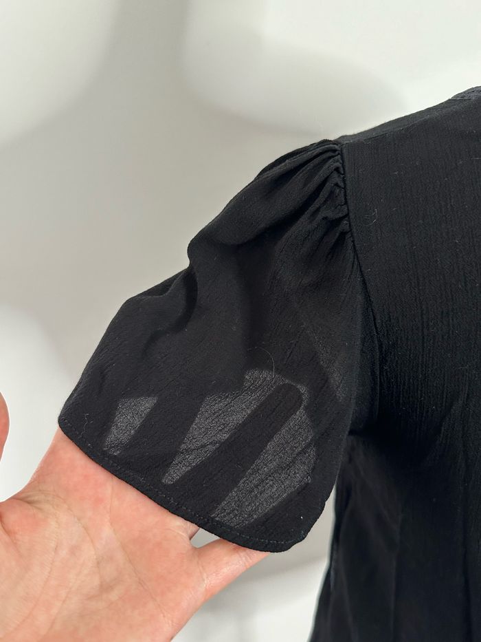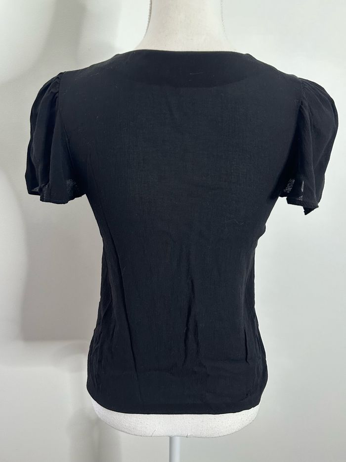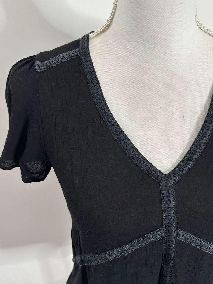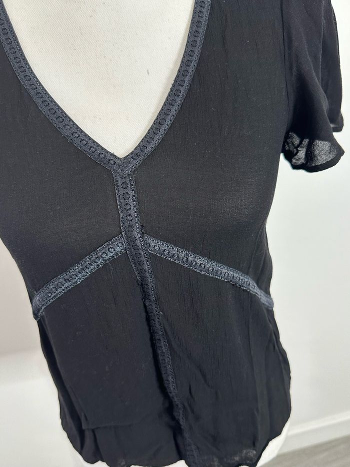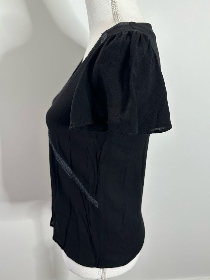 Blouse - Excellent état - Taille 36 équivalent S - Couleur noire - Col en V - Manches courtes - Liens brodés - Plus d’étiquette de taille ni de matière