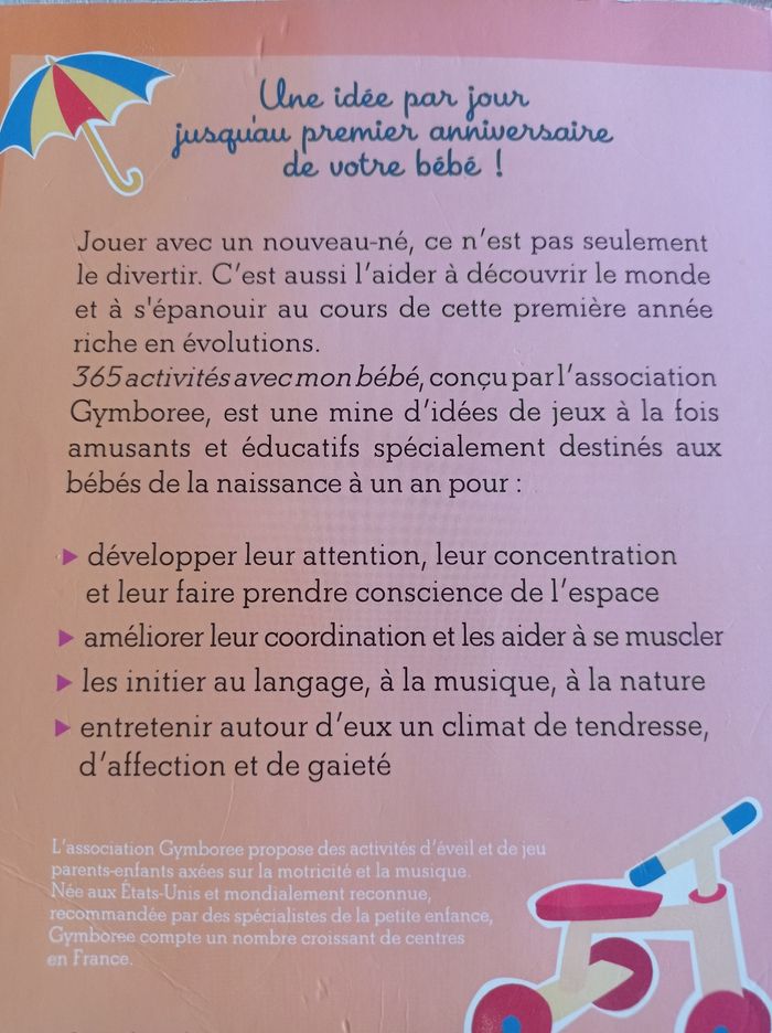 Un livre plein d'idées à partager avec son bébé, Avec aussi des conseils pour les jeunes parents qui régaleront également les bébés ! Très ludique et plein d'astuces.