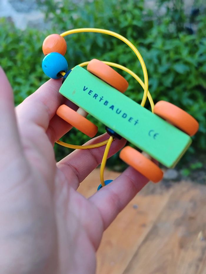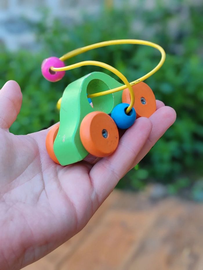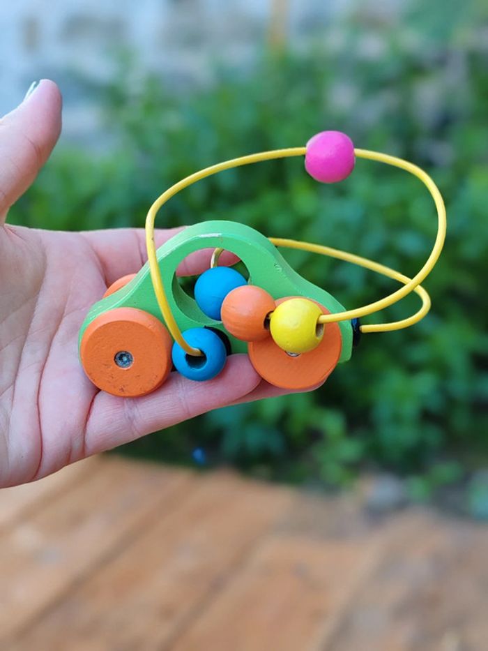 Voiture en bois avec jeu de perles en bois - photo numéro 1