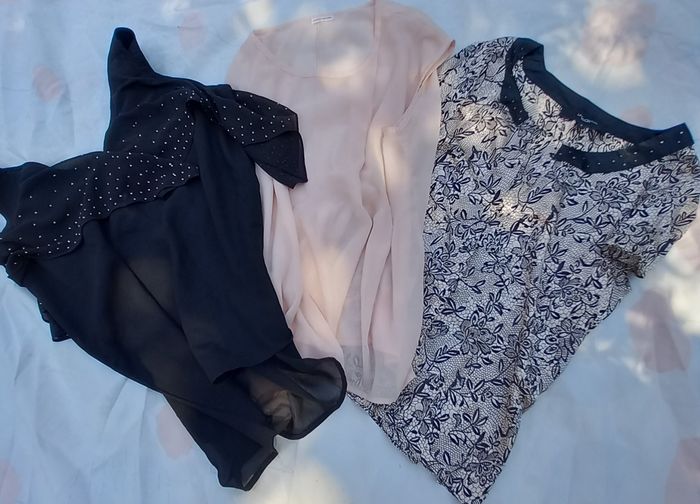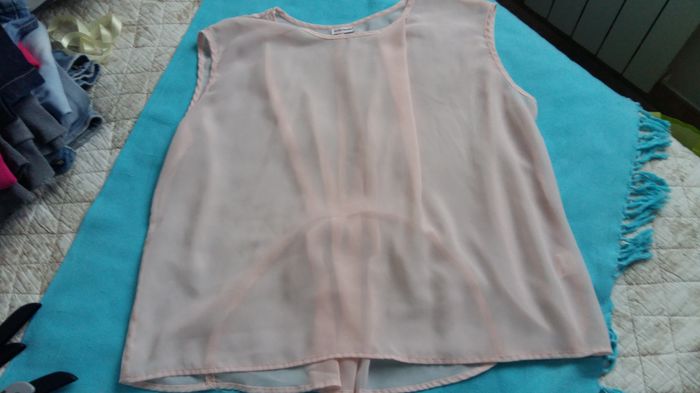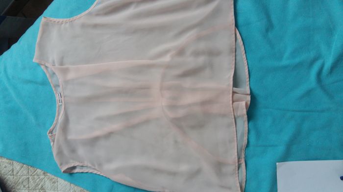 - Haut tunique sans manches de la marque Vintage Dressing, tissu transparent coloris abricot, Taille unique, légères petites marques (voir photo)