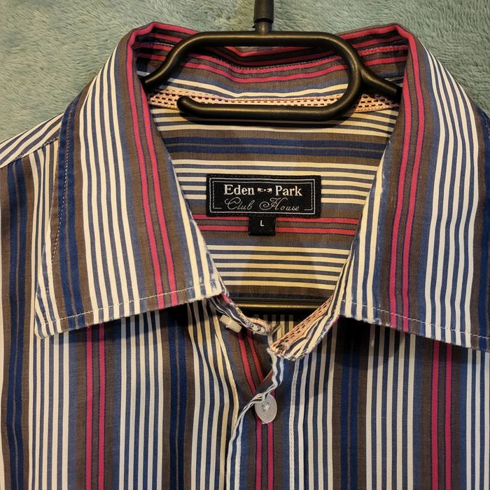 Chemise manche longue à rayure Marque Eden Park Taille L 100% Coton Bouton en forme de ballon rugby 🏉 #VêtementsCeline3240 #EdenPark #Chemise #TailleL #Rugby
