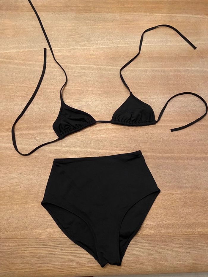 Maillot de bain deux pièces taille haute, haut triangle, H&M noir taille 36 - photo numéro 1