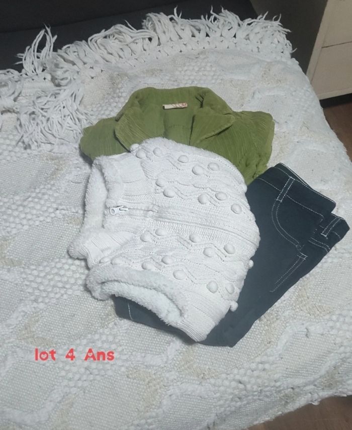 Ce lot contient : 1 jeans taille ajustable 1 veste 1 Gilet super confortable ( tout doux à l'intérieur). Défaut à l'arrière un fil qui ressort mais pas troué ( voir photo) #verchant #dupareilaumeme #gemo