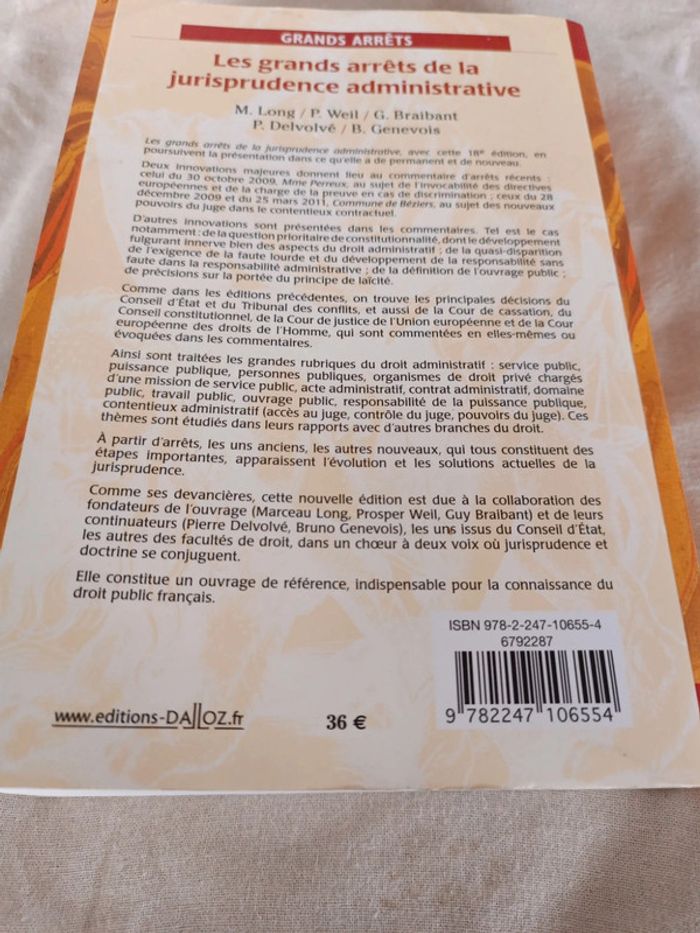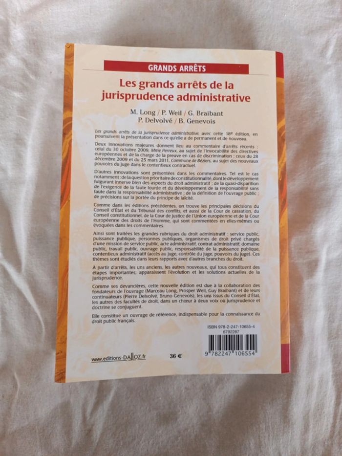 Les grands arrêts de la jurisprudence administrative 18e édition. Voici le lien pour voir tous mes livres pour réduire les frais de port et avoir des réductions automatiques par lot de 3 ou 5 : #romain75015_Livres. Envoi rapide et soigné, bien protégé pour le transport.