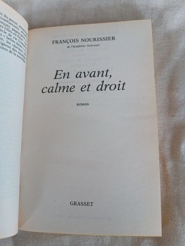 En avant calme et droit François Nourissier. Voici le lien pour voir tous mes livres pour réduire les frais de port et avoir des réductions automatiques par lot de 3 ou 5 : #romain75015_Livres. Envoi rapide et soigné, bien protégé pour le transport.