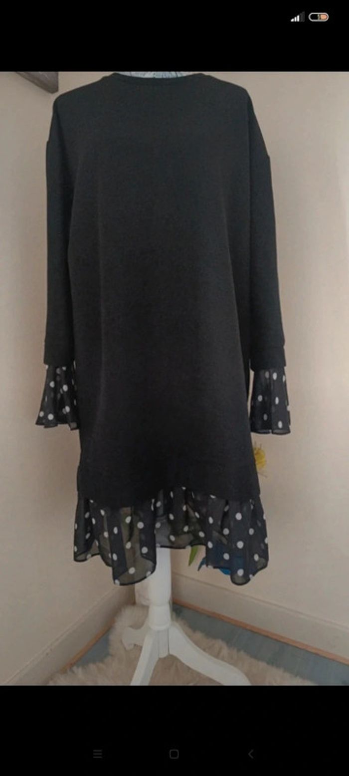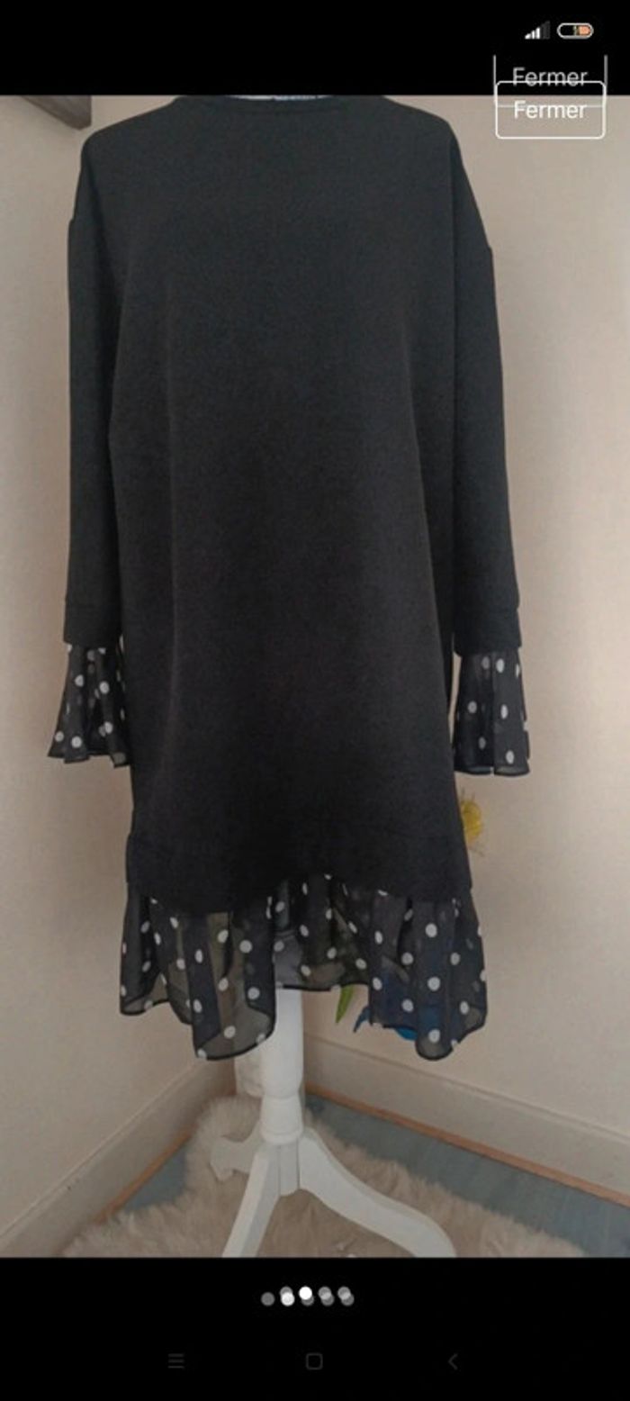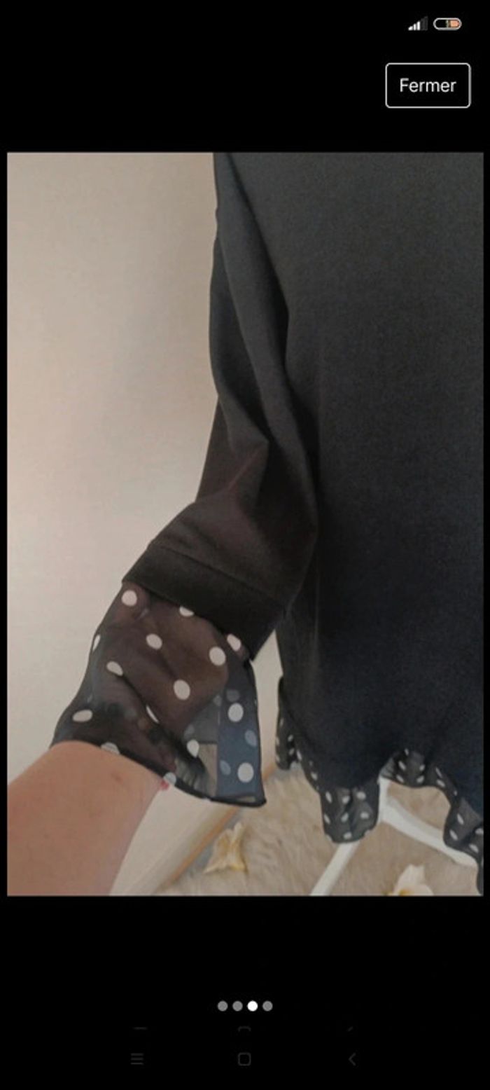 Robe classe manches longues t 46, bas et manches en voile motifs pois
