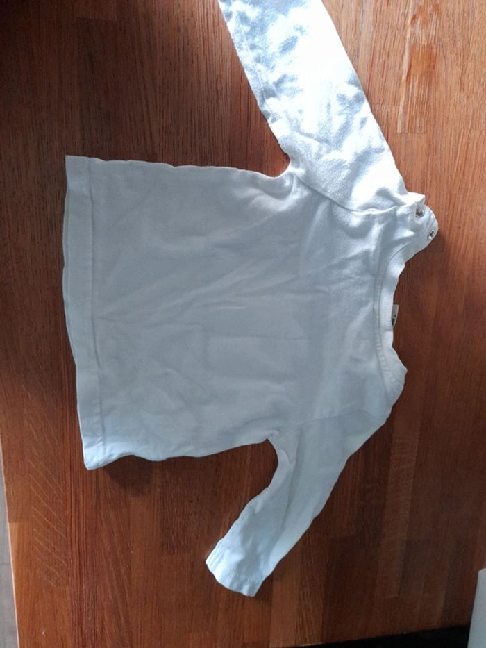 Tee-shirt manches longues tape à l'œil bon état blanc 6 mois