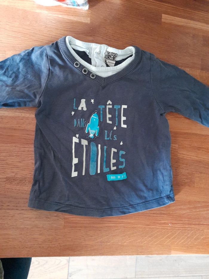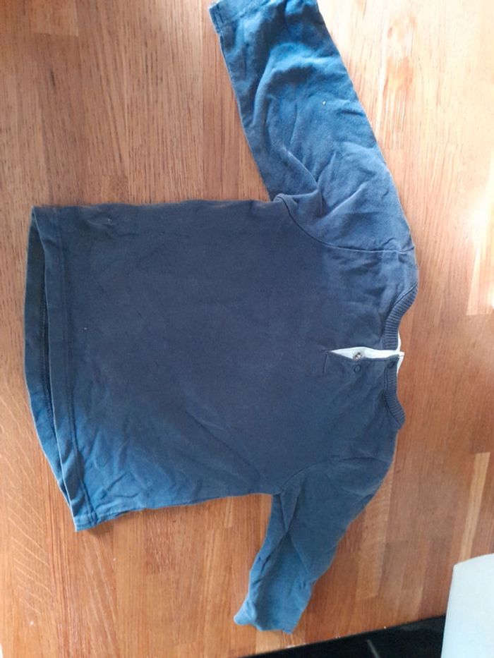 Tee-shirt manches longues bleu marine tape à l'œil bon état juste un tout petit trou voir photo 2