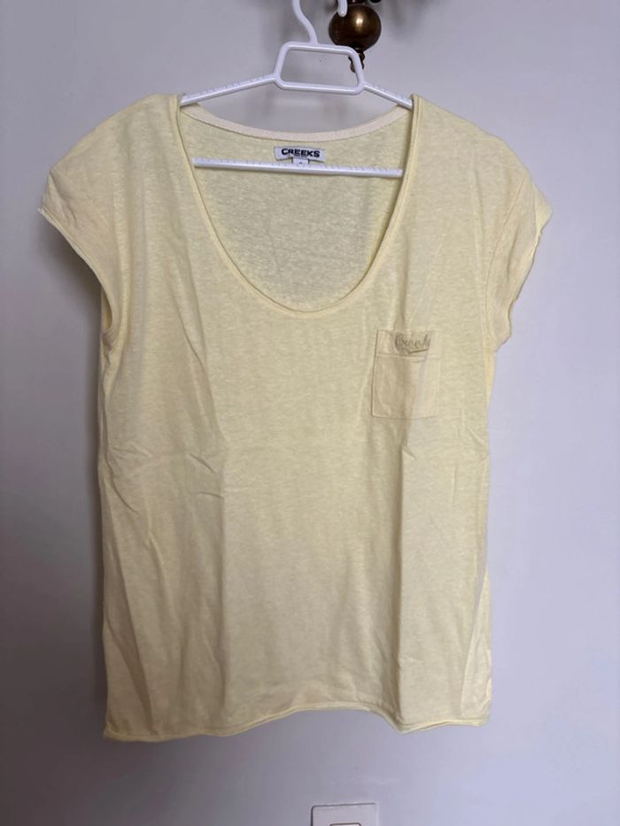 Tee-shirts jaune pale à manches courtes Poche sur la poitrine Portée 1 ou 2 fois