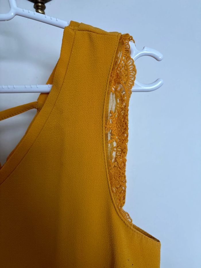 Blouse moutarde sans manches, dentelle au niveau des épaules
