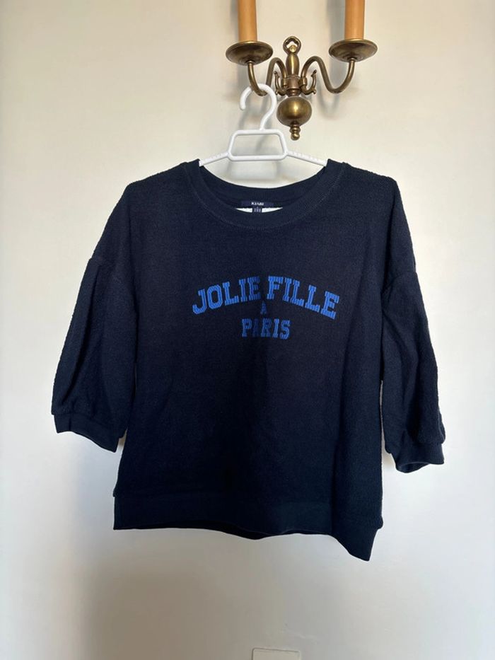 Sweat-shirt à manches 3/4 bleu marine avec écriture bleu Jamais portée
